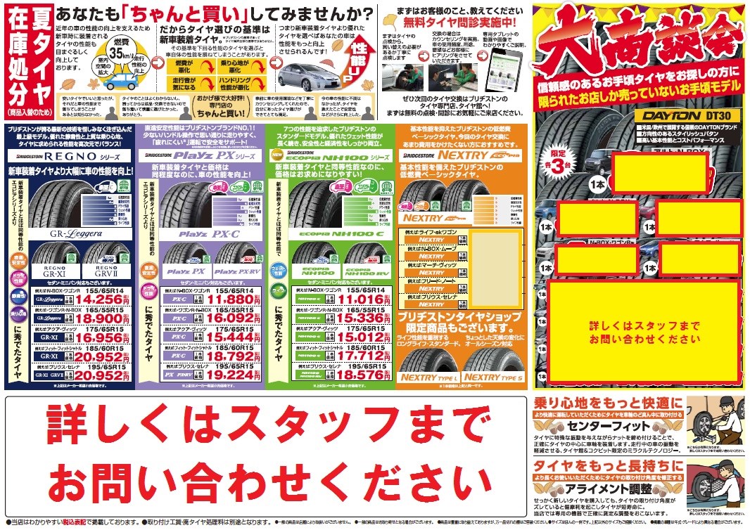夏 タイヤ タイヤ 館 価格 チラシ